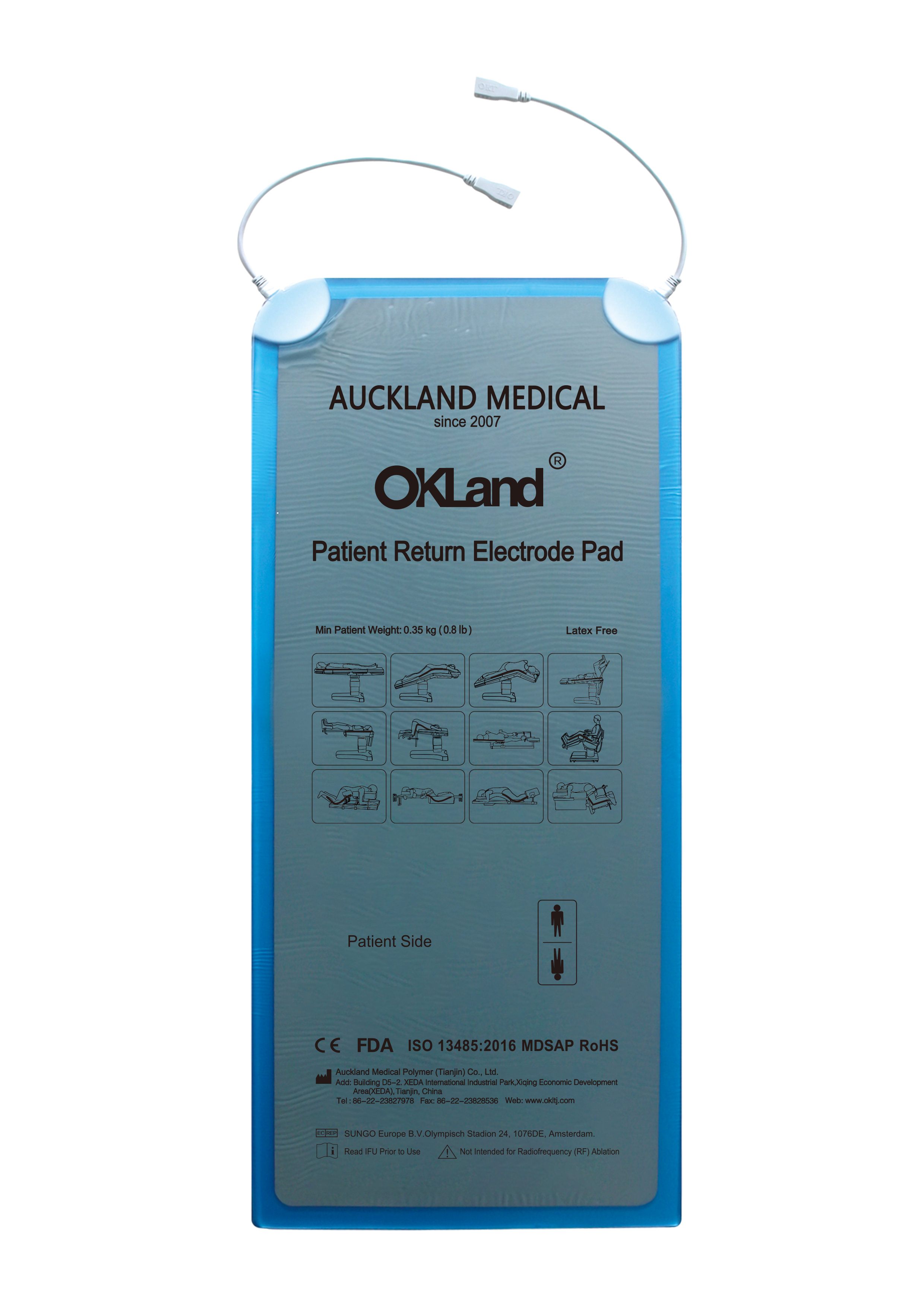 OKLand® dual-cord reusable patient return electrode pads are designed for surgical environments utilizing dual-generator workflows. In defined clinical scenarios, facility policy may require one patient return electrode to connect to two electrosurgical units (ESUs). The use of multiple ESUs on a single patient is governed by perioperative safety protocols and clinical engineering oversight.